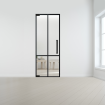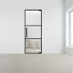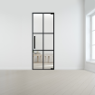 Uitvoering van een glazen steellook pendeldeur XL zonder kozijn