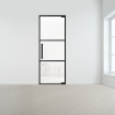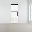 Bij het kiezen van een steellook binnendeur kun je kiezen voor een vakverdeling in de glazen deur. Wanneer je kiest voor een vakverdeling heb je keuze uit twee vakken, drie vakken, vier vakken, zes vakken of negen vakken. De vakverdeling wordt aangebracht middels aluminium platstrips (20x2mm). De platstrips worden weergegeven zoals op de afbeeldingen. De afstand tussen de vakken is afhankelijk van de totale afmetingen die de deur krijgt.