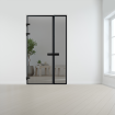 Uitvoering van een glazen XL binnendeur met steellook voor een opdek kozijn met zijlicht