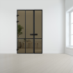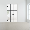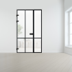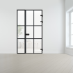Bij het kiezen van een steellook binnendeur kun je kiezen voor een vakverdeling in de glazen deur. Wanneer je kiest voor een vakverdeling heb je keuze uit twee vakken, drie vakken, vier vakken, zes vakken of negen vakken. De vakverdeling wordt aangebracht middels aluminium platstrips (20x2mm). De platstrips worden weergegeven zoals op de afbeeldingen. De afstand tussen de vakken is afhankelijk van de totale afmetingen die de deur krijgt.