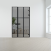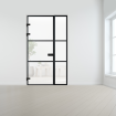 Binnendeuren met een stalen frame worden onder de 2.2 m2 uitgevoerd in gehard glas met een dikte van 8 millimeter. Wanneer de glazen deur groter wordt dan 2.2 m2, dan wordt er gebruikgemaakt van gehard glas van 10 millimeter. Gehard glas zorgt voor optimale veiligheid. Mocht de binnendeur breken dan heb je geen last van glasscherven en is de kans op verwondingen minimaal omdat het glas uiteenspat in duizenden kleine glassplinters. De stalen uitstraling van de glazen binnendeur wordt gecreëerd door rondom de glasplaat aluminium U profielen (20x15x3mm) aan te brengen.